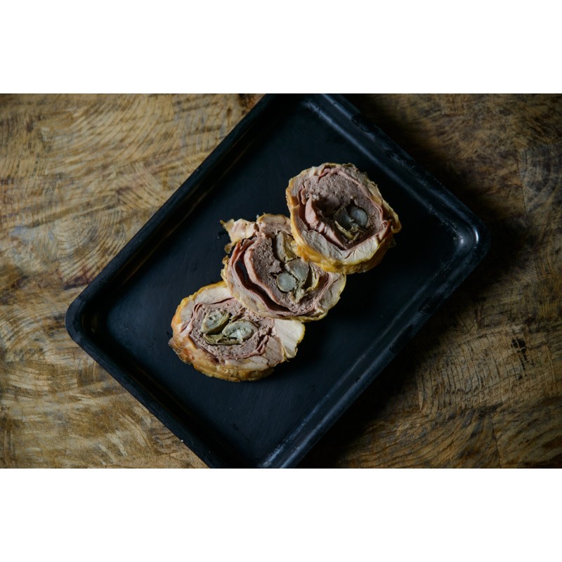 Faraona nostrale ripiena con funghi porcini. Prodotto già cotto.