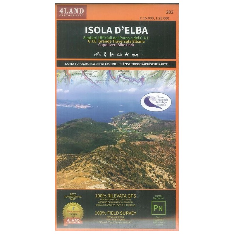 Da sempre all’Elba ci si sposta a piedi e su ogni isola dell’Arcipelago Toscano si può camminare con soddisfazione, per questo il Parco Nazionale Arcipelago Toscano ha realizzato questa carta escursionistica generale comprendente la rete sentieristica dell’Elba e delle piccole isole. Salire i pendii, scendere lungo le vallate, raggiungere la costa, attraversare la macchia, inoltrarsi lungo gli antichi viottoli con passo spedito in gruppo e in allegria, diventa un modo coinvolgente per trascorrere un sano tempo libero. Si può anche preferire di compiere escursioni solitarie o con le persone più care per condividere l’intensità e le suggestioni che fanno bene al cuore, camminare è prima di tutto un piacere.