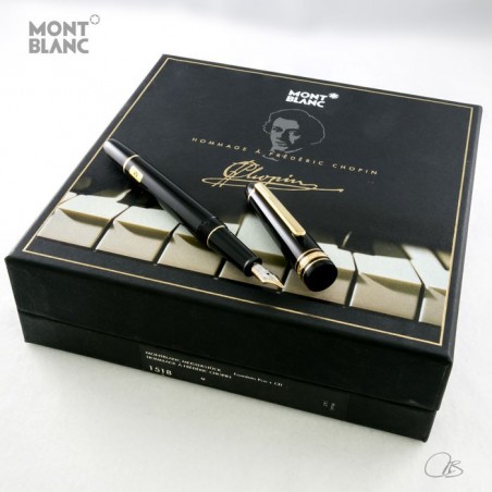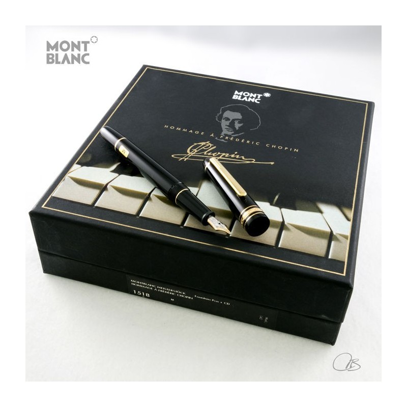 La penna stilografica Montblanc Hommage a Frederic Chopin Meisterstuck ha un pennino in oro 14K intarsiato con platino. Il corpo e il cappuccio sono realizzati in preziosa resina nera ed è dettagliato in oro placcato 14K. Questa splendida penna stilografica viene fornita in una bella scatola nera decorata con una firma Chopin dorata. Dopo aver rimosso la cover troverai una squisita registrazione del concerto di Chopin per pianoforte e orchestra No. 1 in Mi minore e concerto per pianoforte e orchestra n. 2 in F minore. I concerti sono stati eseguiti dalla Filarmonia Montblanc delle Nazioni condotta da Justus Frantz.