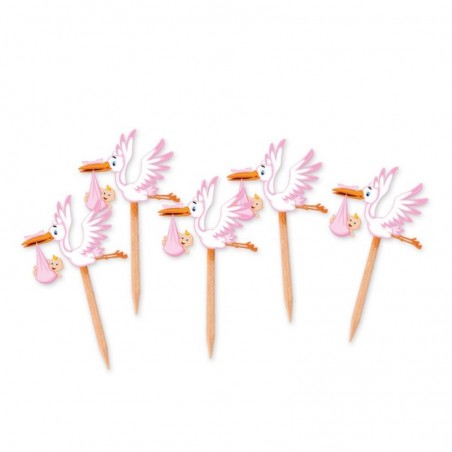 Confezione da 25 stuzzicadenti con cicogna rosa o azzurra, ideali per decorare muffin, cup cake, dolcetti, panini e tanto altro per una festa a tema nei minimi dettagli!