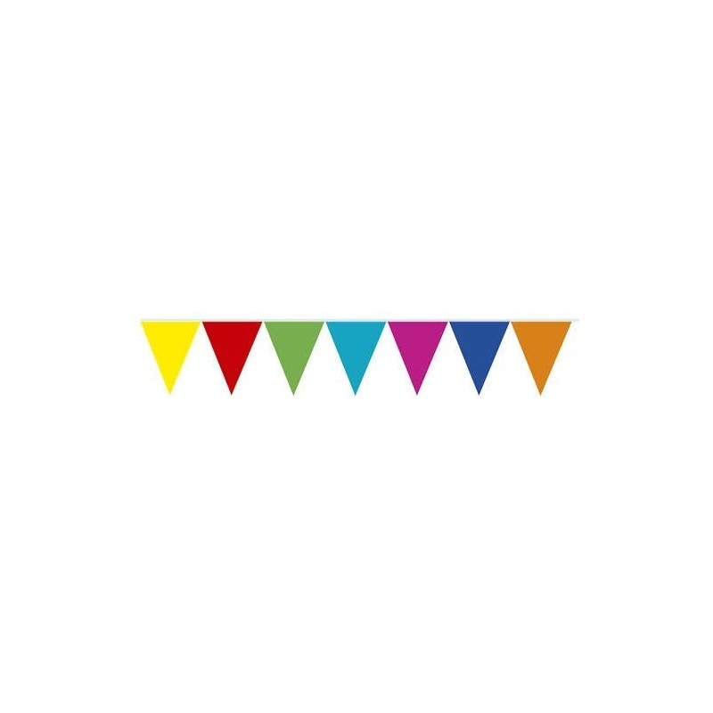 Bandierine festone in pvc multicolor per addobbi feste e compleanni; lunghezza 10 metri.