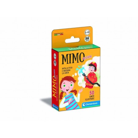 Clementoni Mimo Mestieri. Il tradizionale gioco del mimo fatto su misura per i bambini in età prescolare! Il gioco contiene 50 carte con simpatici personaggi raffigurati nel loro mestiere. Scopo del gioco è imitare il mestiere illustrato nella carta cercando di farla indovinare agli altri. Il vincitore sarà chi riuscirà a indovinare il maggior numero di imitazioni.