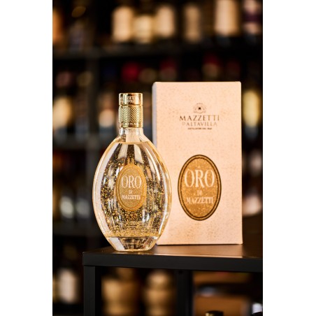 Oro di Mazzetti ® che continua ad affascinare i consumatori grazie alla sua estrema morbidezza legata alla Grappa di Moscato che ne rappresenta la base, il suo ridotto grado alcolico e le incantevoli microscaglie di vero oro alimentare (23 carati).30’gradi alcolici.